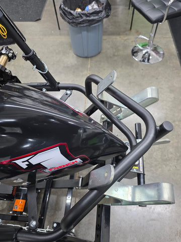 We designed the easily adjustable hooks to accomodate virtualy every style of kart out there. Current owners of the Streeter Super Lift include indoor karting centers, road racers, oval racers, winged outlaw karts, Super Karts, TaG, Shifters, kid karts, cadets and more!
